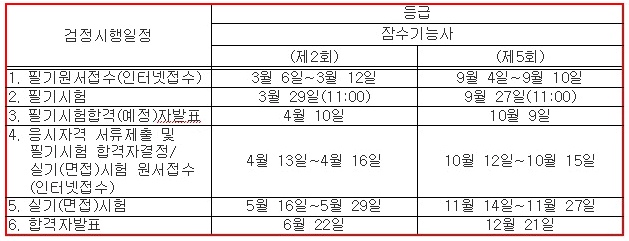 1400½Ã°£ ÀÌ»ó Àá¼ö°ü·Ã ±³À°ÈÆ·ÃÀ» ¹ÞÀº ÀÚ´Â ¼ö·áÀϷκÎÅÍ 2³â°£ Çʱâ½ÃÇèÀ» ¸éÁ¦¹Þ½À´Ï´Ù.