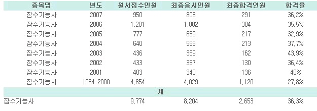¡á Àá¼ö±â´É»ç ÇÕ°Ý °ËÁ¤ÇöȲ